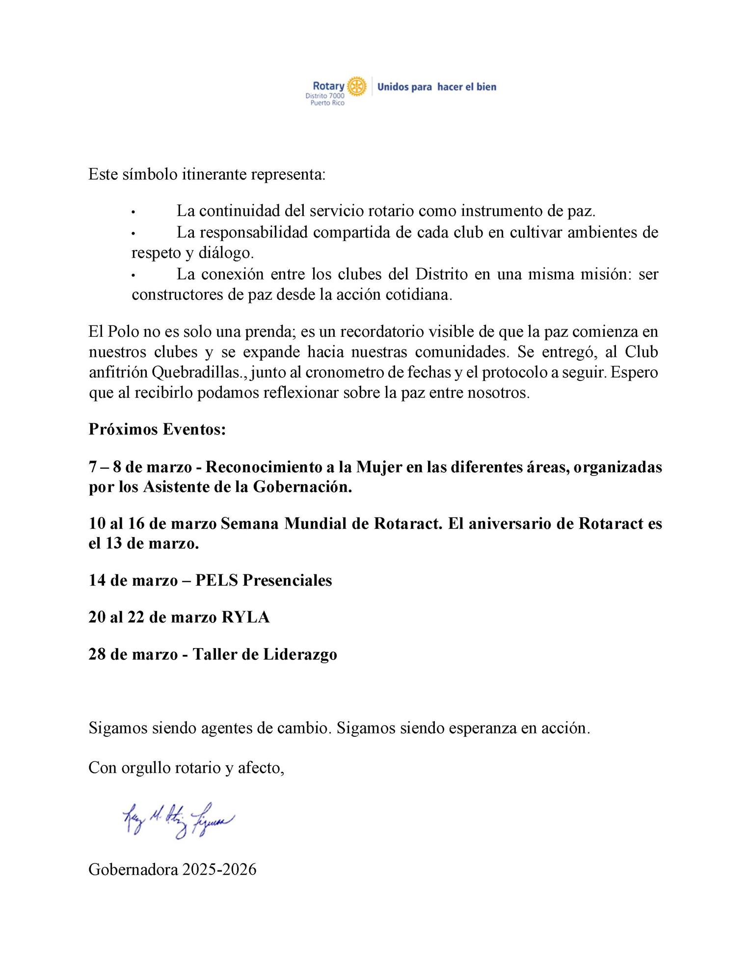 Como Gobernadora del Distrito 7000, me llena de entusiasmo comenzar junto a ustedes este nuevo capítulo de servicio, liderazgo y transformación.